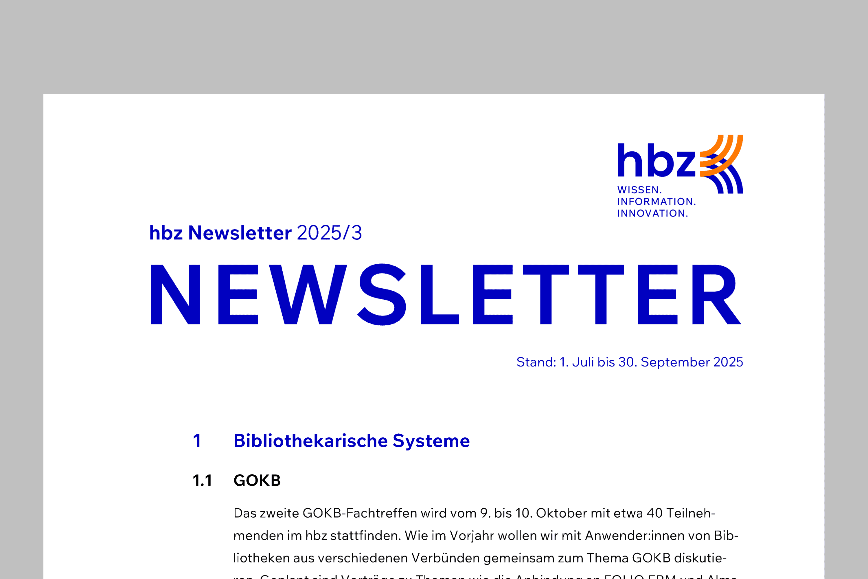 Das hbz hat seinen dritten Newsletter 2025 veröffentlicht. Informieren Sie sich über die aktuellen Entwicklungen im hbz!